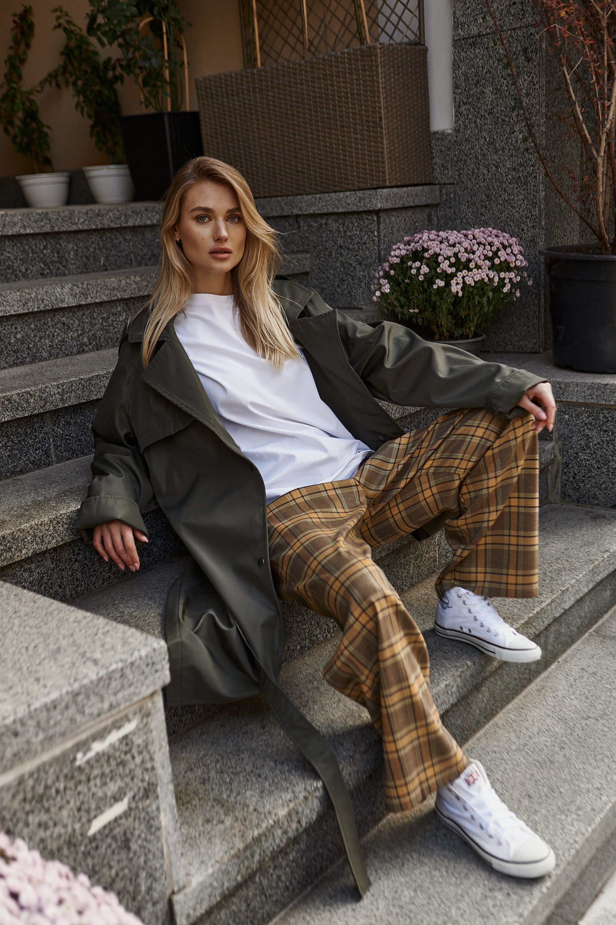 Khaki Hooded Trench Coat