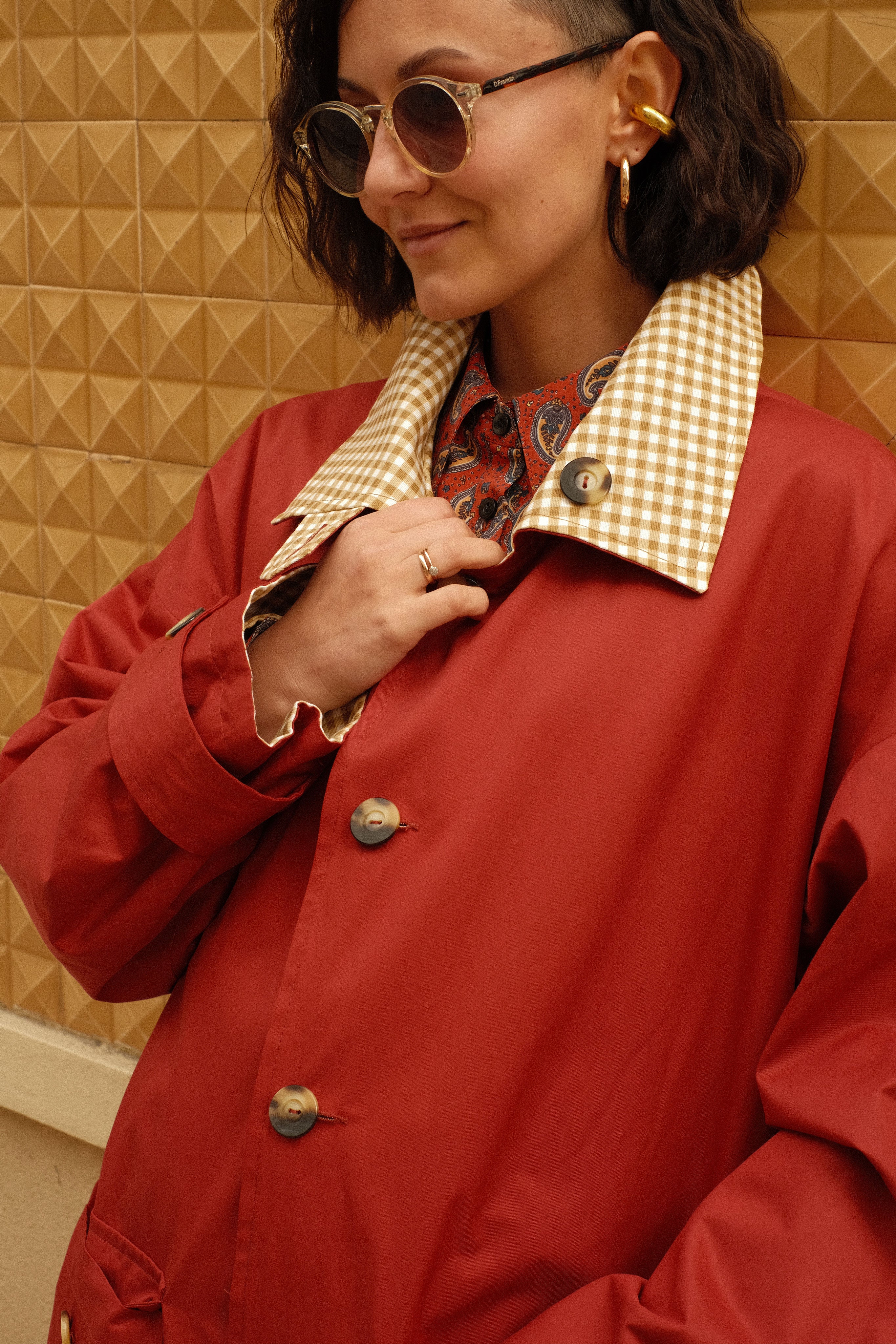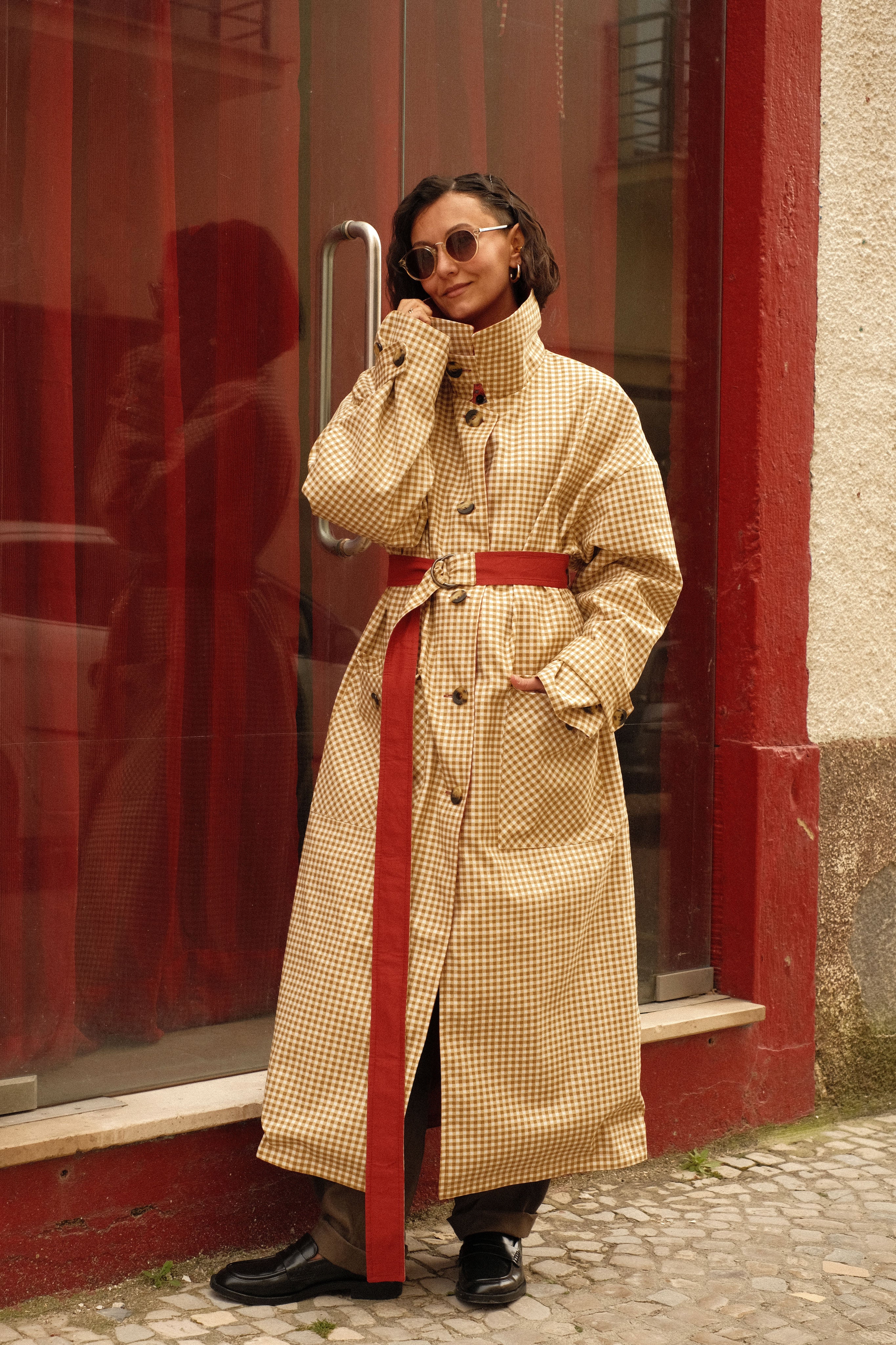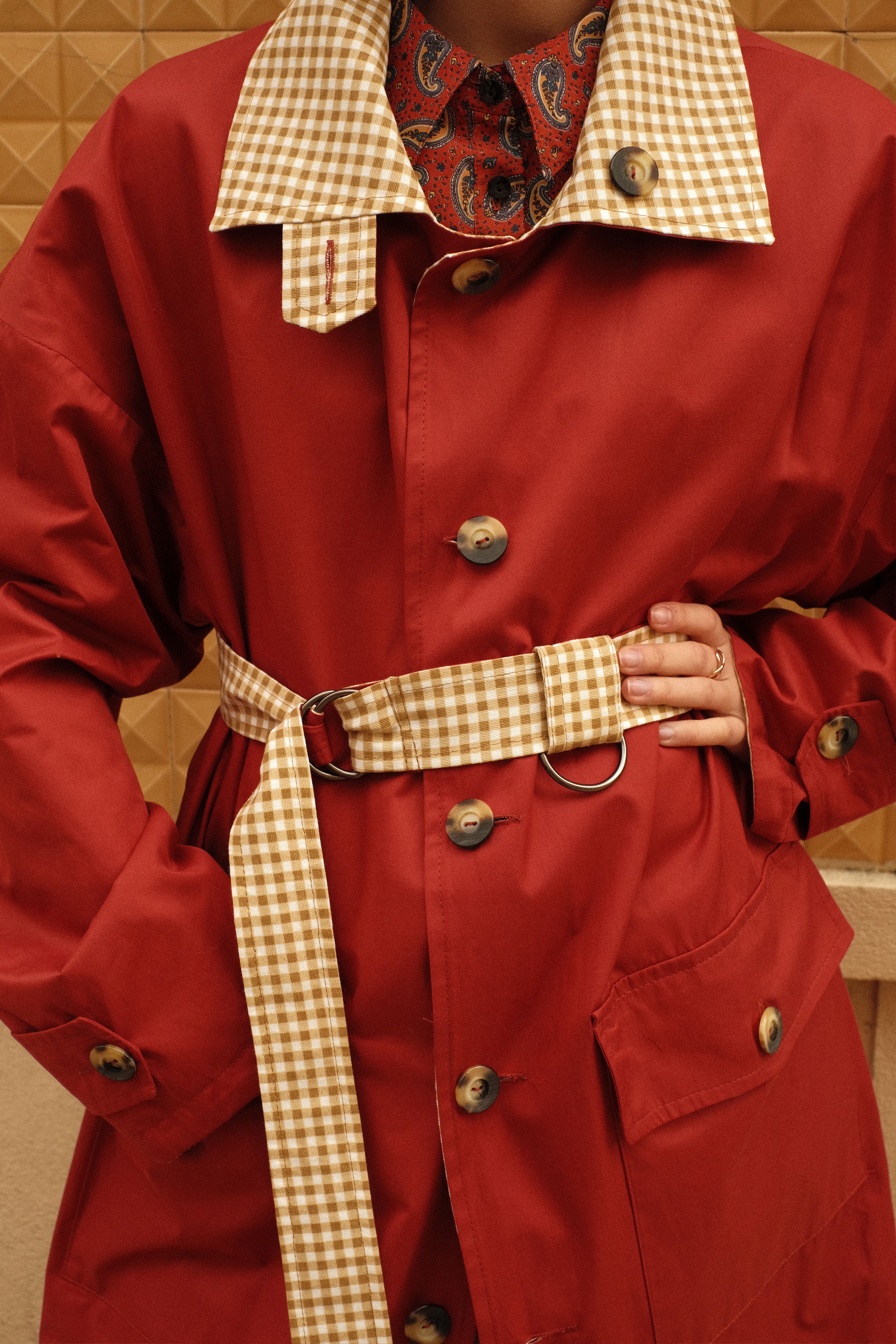 Двосторонній оверсайзний тренч. Принтована сторона має тефлонове покриття, що забезпечує водовідштовхувальні та брудовідштовхувальні властивості. Є кишені з двох сторін. Ширина рукава регулюється. Фасон унісекс.
