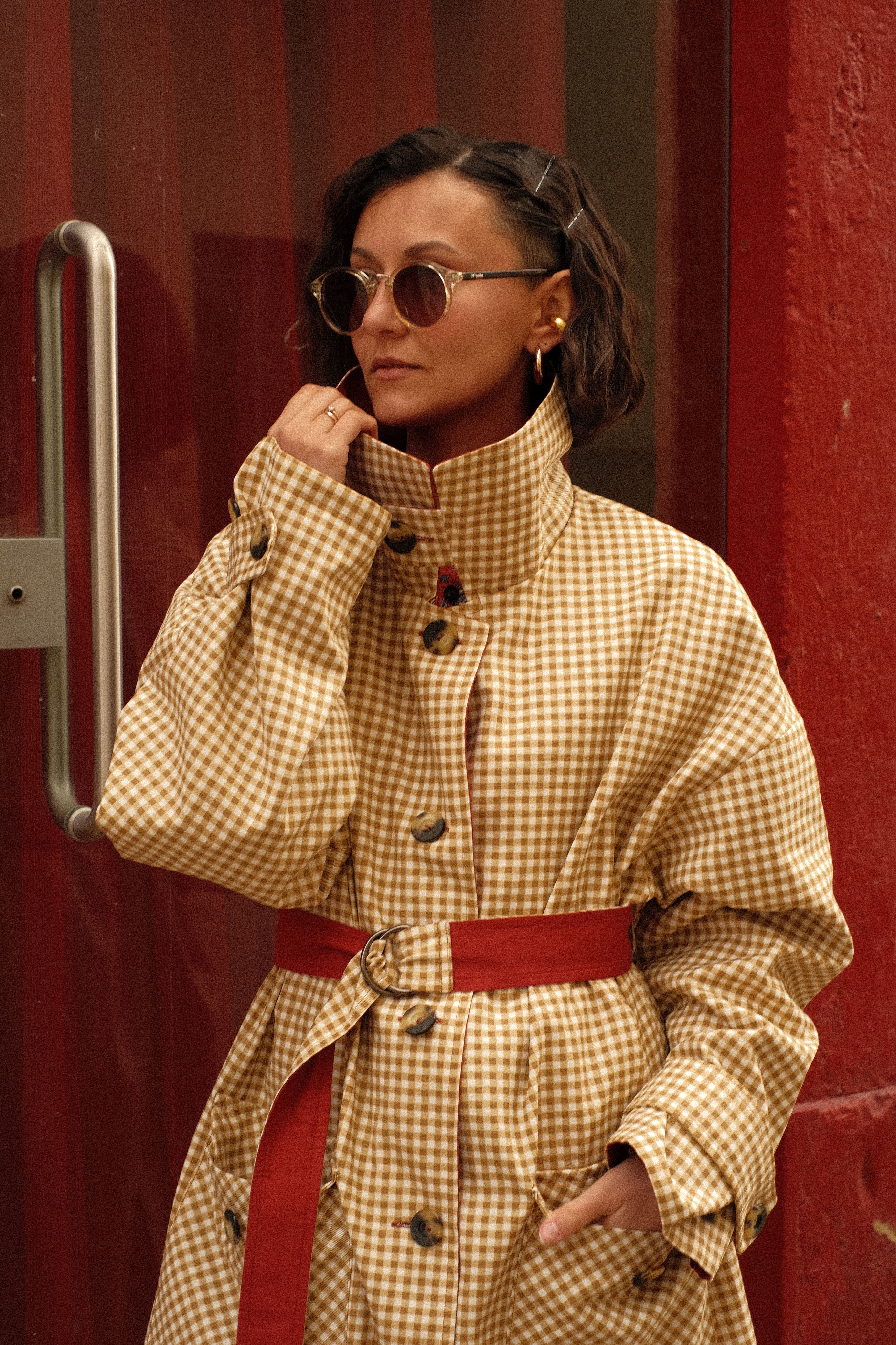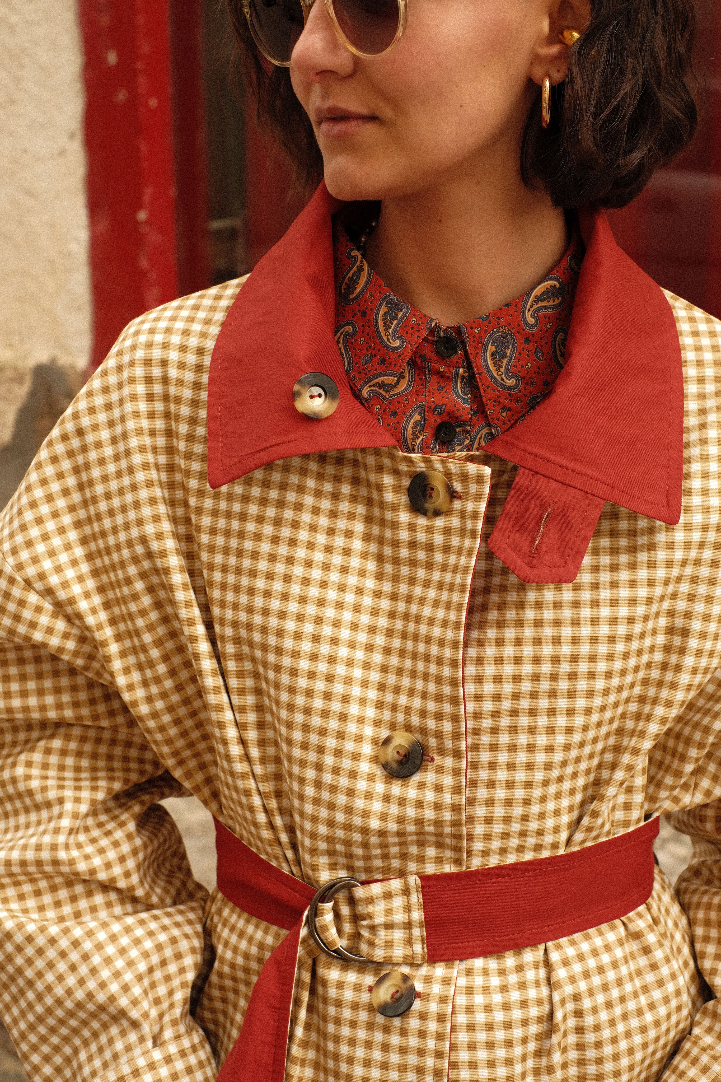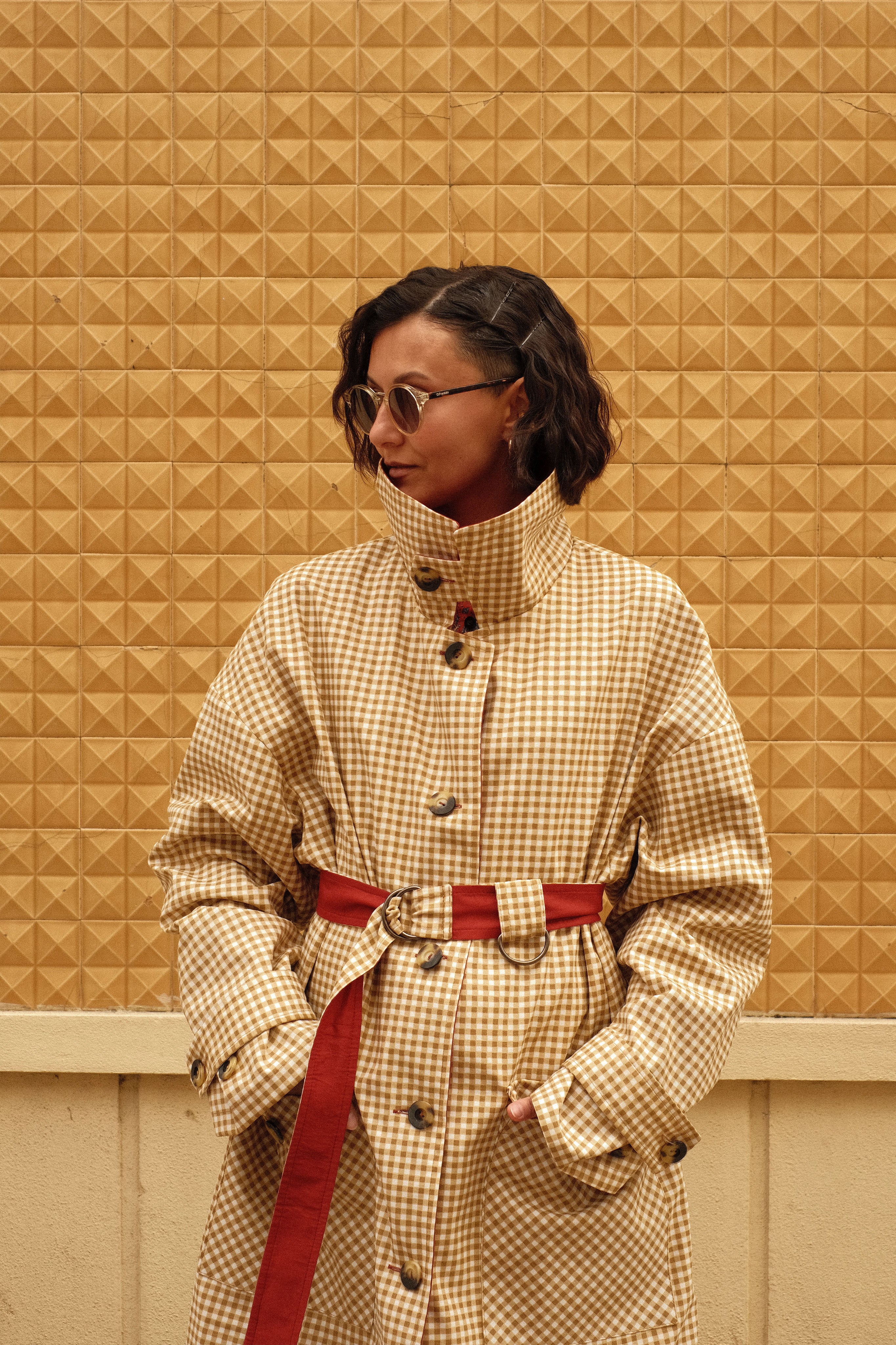 Двосторонній оверсайзний тренч. Принтована сторона має тефлонове покриття, що забезпечує водовідштовхувальні та брудовідштовхувальні властивості. Є кишені з двох сторін. Ширина рукава регулюється. Фасон унісекс.