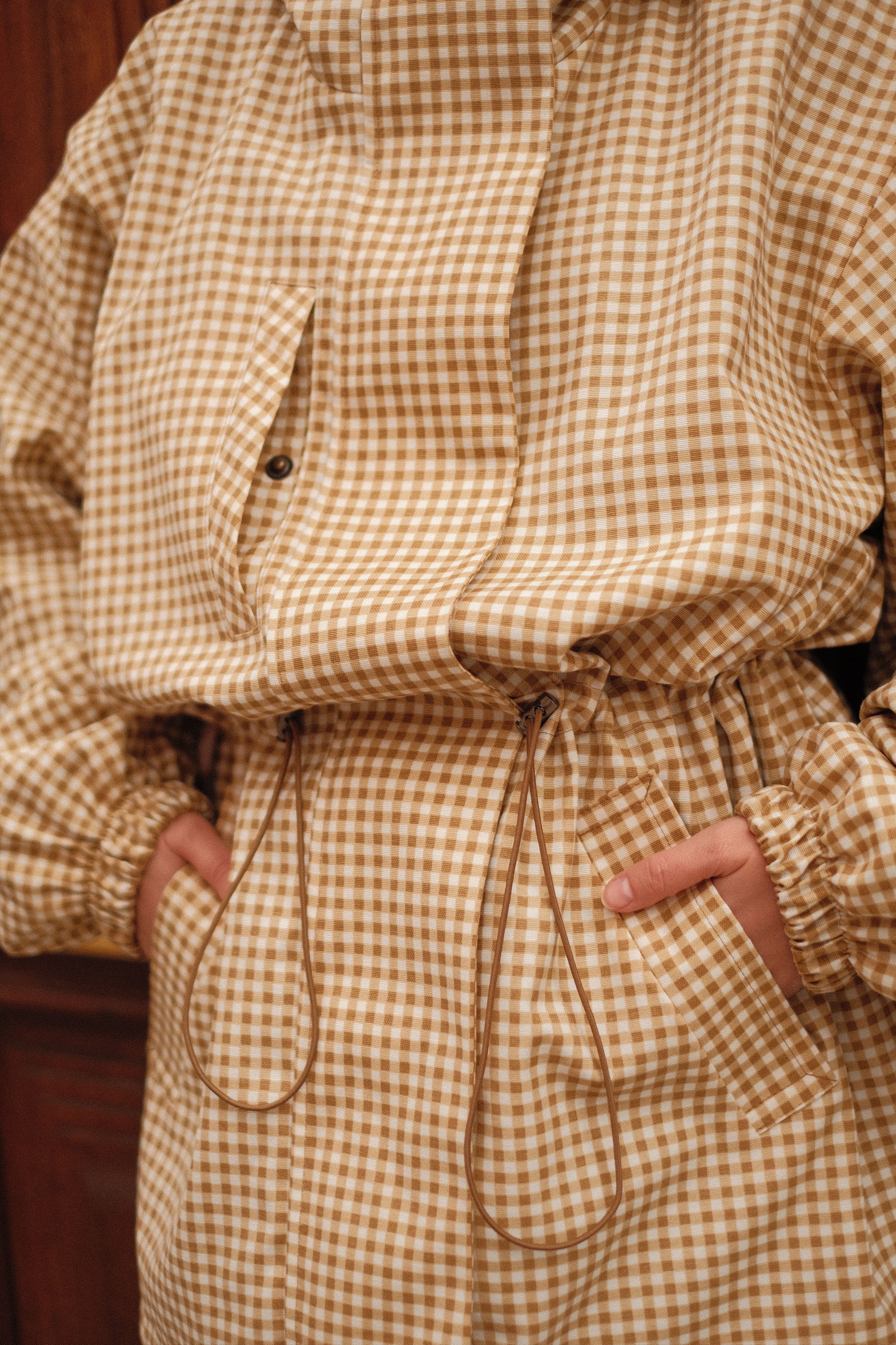 Куртка має затяжки на талії та внизу виробу, завдяки яким можна легко регулювати силует і змінювати форму куртки. Є зручні бокові кишені та одна кишеня на грудях.
